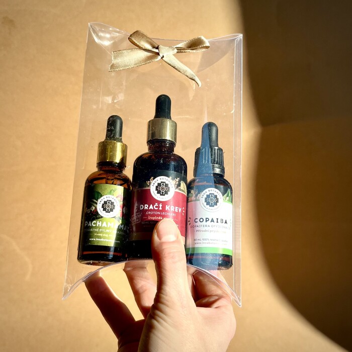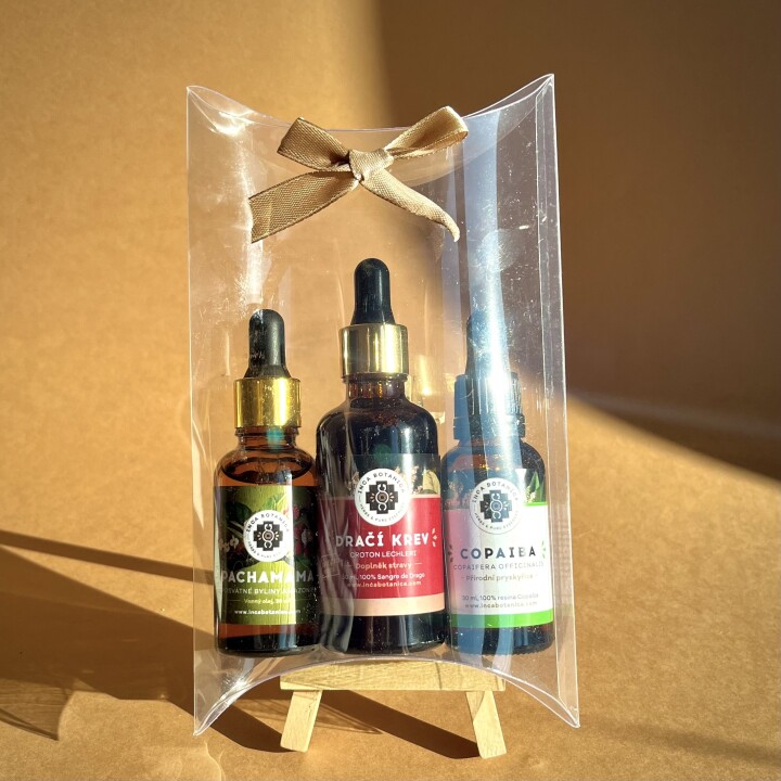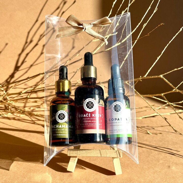 Balíček spojuje sílu dvou amazonských pokladů - dračí krve, copaibu a přírodní roll-onu Pacachamama v jednom dárkovém setu, který potěší všechny milovníky přírody a přirozené péče o sebe.