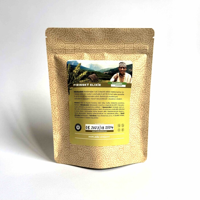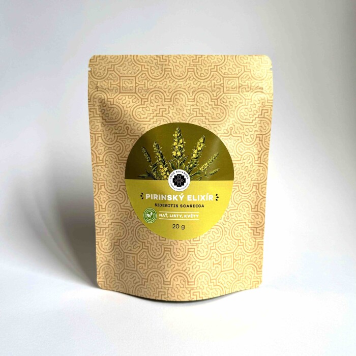 Pirinský Elixír je velmi oblíbený čaj lahodné chuti pocházejícící z bulharských hor. Čaj je plný vitamínů a důležitých minerálů pro naše tělo i mozek, proto se přímo po jeho požití lidé cítí velmi příjemně mentálně a fyzicky osvěženi. Chuť čaje je jemná, lahodná, mírně zemitá s květinovými tóny a jemnými náznaky citrusů a máty.