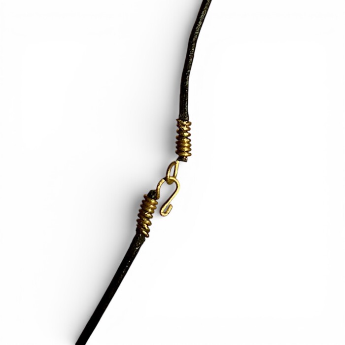 Dodáváno na kvalitní kožené šňůrce se zapínáním, díky kterému se pohodlně nosí a snadno nasazuje.