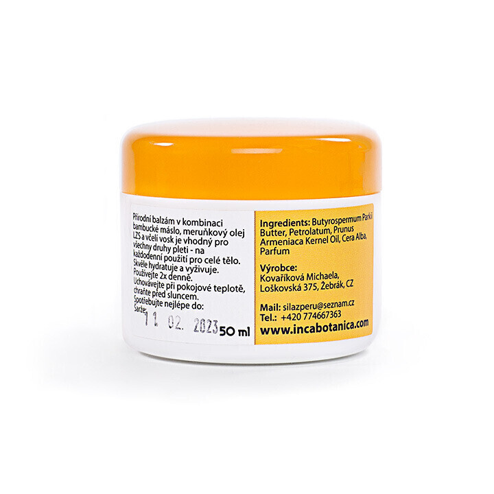 Meruňkový olej LZS s bambuckým máslem a včelím voskem (surový, nebělený) tvoří skvělý balzám pro všechny druhy pleti - na každodenní použití.