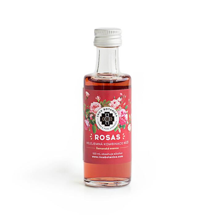 Esence Rosas navazuje svoji podstatou na předešlé esence a je vhodná jako závěrečná. Směs rostlin ve velejemném alkoholu je harmonizována speciálními kameny pro dosažení vysoké kvality dle původní indiánské Kosmovize. 100%přírodní výrobek.