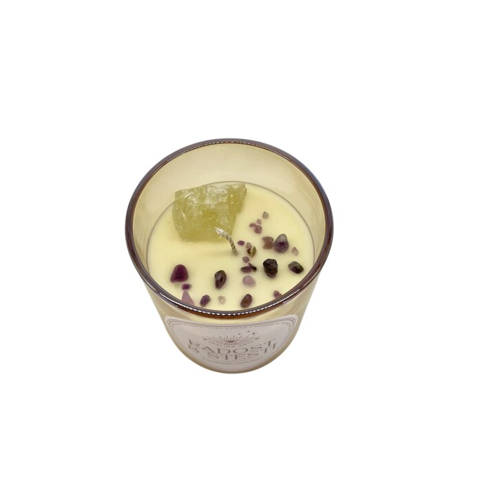Sójová svíčka ve skle s vonným olejem zdobená minerály