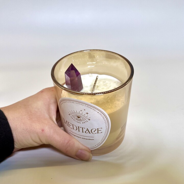 Sójová svíčka - Levandulová s ametystovou špičkou - Meditace