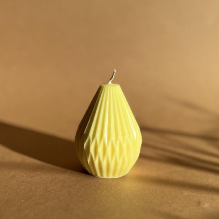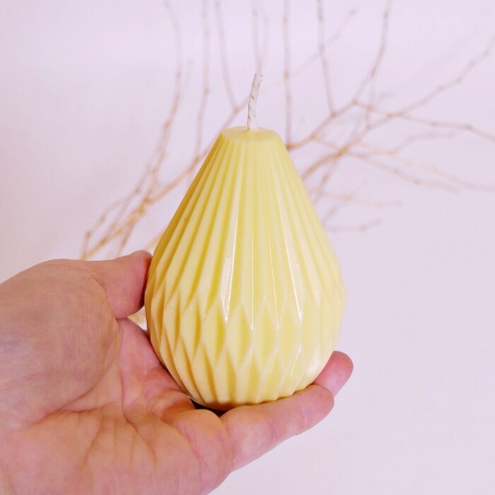 Přírodní ručně odlévaná svíčka ze sójového vosku ve tvaru hruštičky. Svíčka je vhodná do domácnosti či na adventní věnec. Koupíte ji v několika barevných variacích. Při hoření se uvolňuje jemná vůně směsi esenciálních olejů.