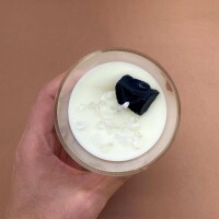 Ručně odlévaná svíčka z čistého sojového vosku, s přírodním aroma a černým obsidiánem.