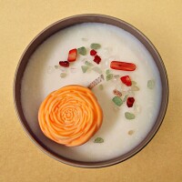 Vonná svíčka ze sójového vosku s krystalovým pískem a voskovou kytičkou - Inspirace, 190 ml