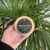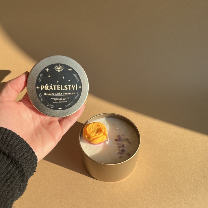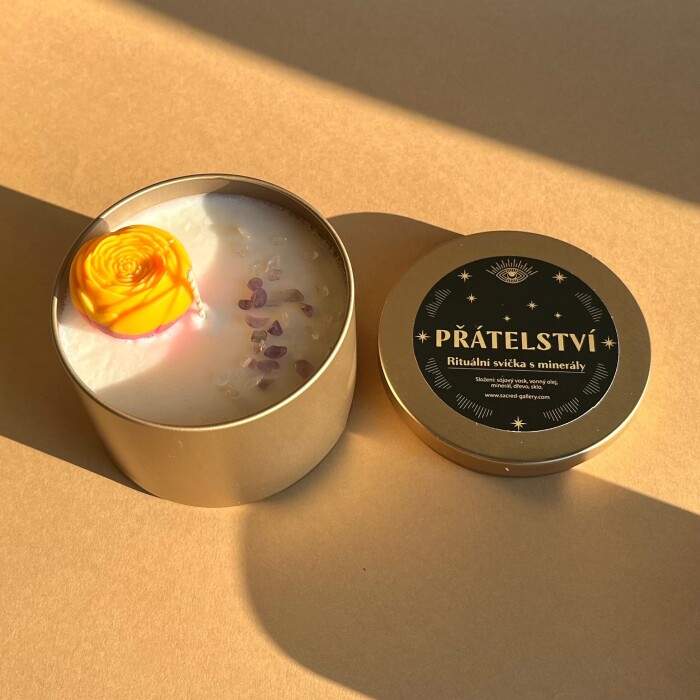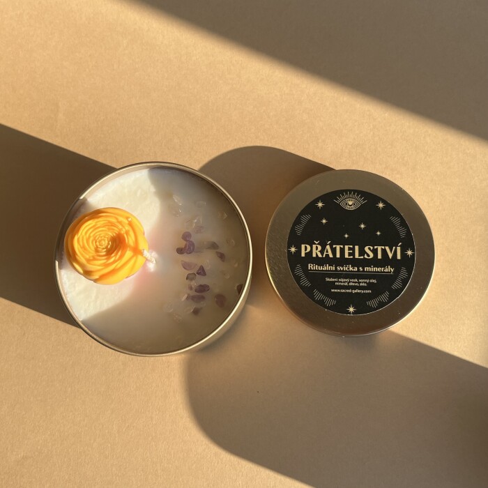 Vonná svíčka ze sójového vosku s krystalovým pískem a voskovou kytičkou - Přátelství