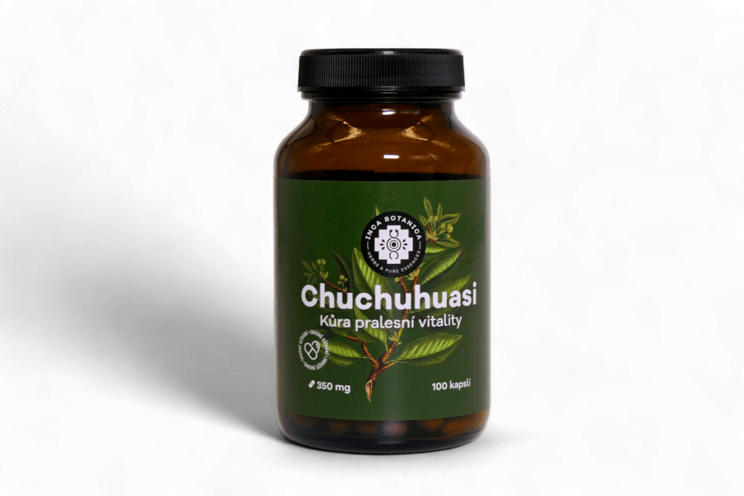 Složení: 100% mletá kůra Chuchuhuasi (Maytenus macrocarpa, cortex), rostlinná kapsle veganská